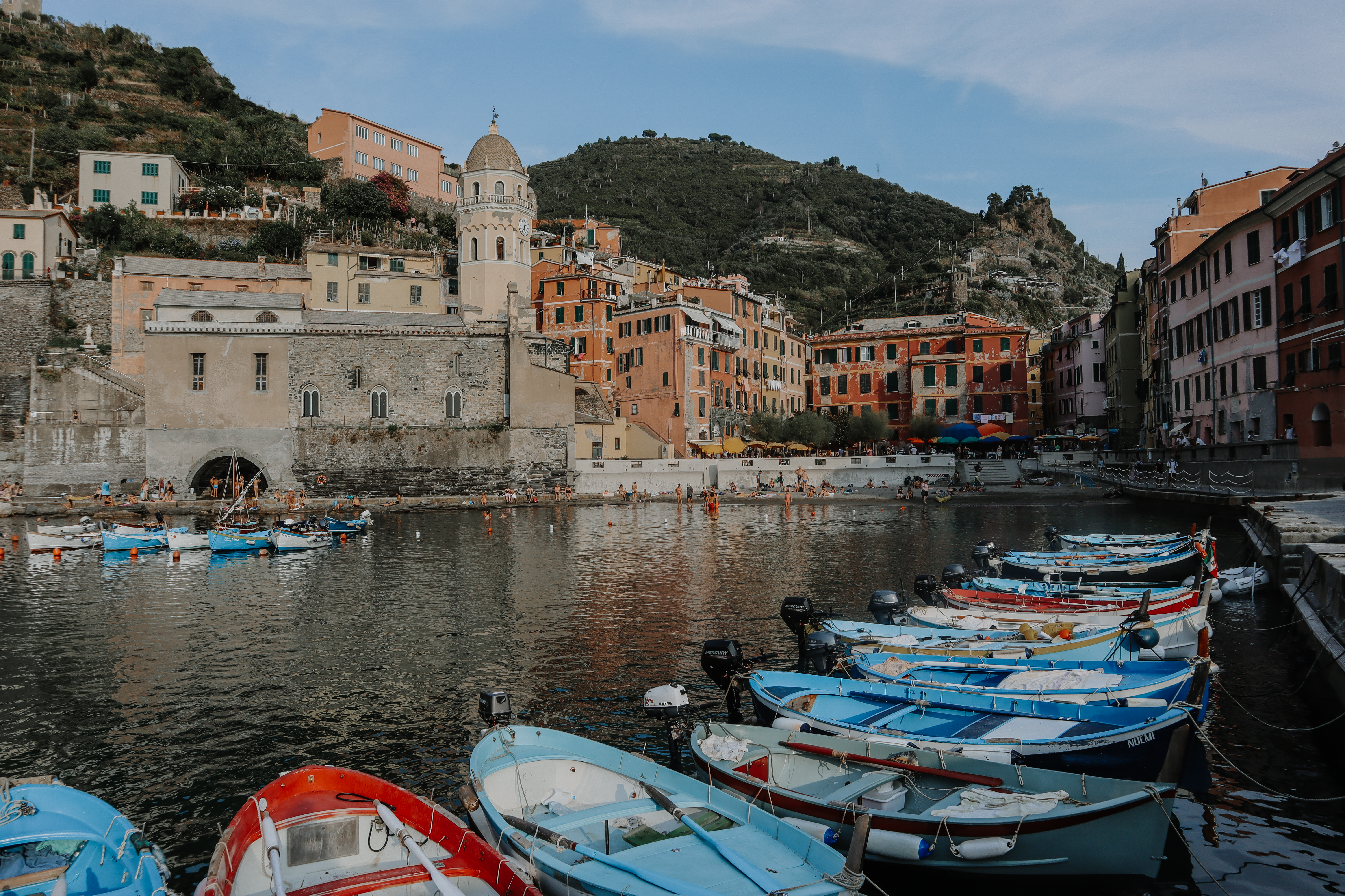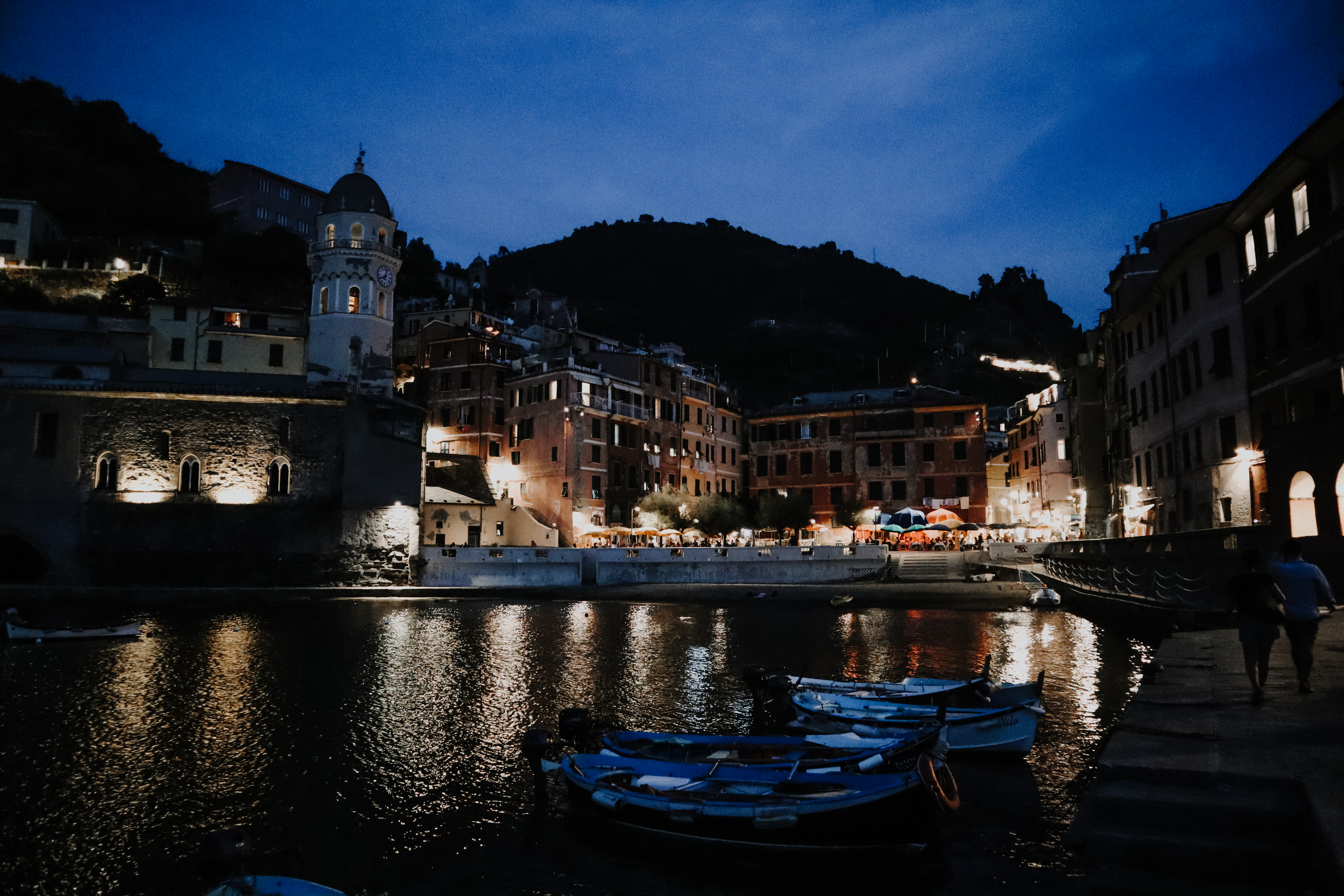 In de kleine baai van Vernazza vind je talloze restaurants. We strijken neer bij Ristorante Luca voor het diner. In deze kustplaats kun je vanzelfsprekend veel vis bestellen. Ik kies voor een pasta met zeevruchten. De sfeer in de baai wordt steeds knusser naarmate het langzaam donker wordt. Na het eten genieten we van de prachtige zonsondergang. Wat een perfecte dag was dit!